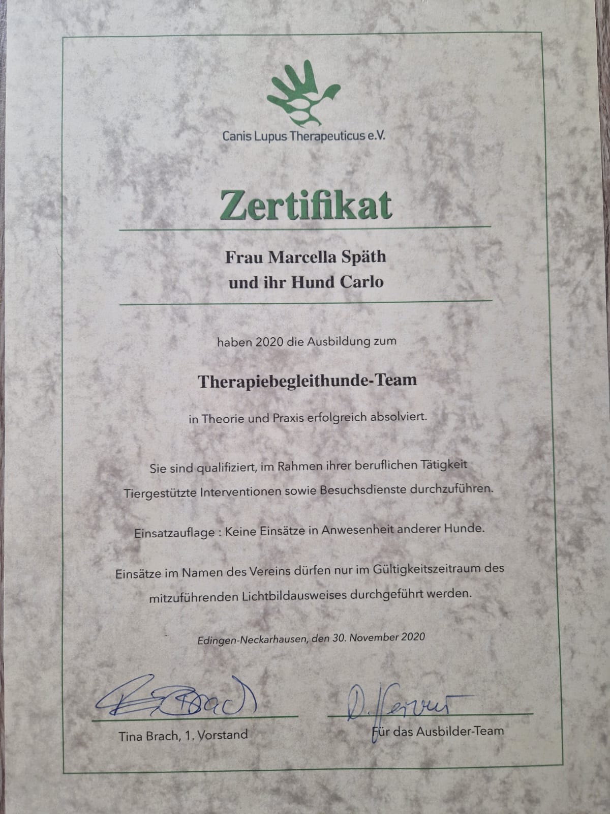 Eine weitere große Leidenschaft sind Hunde, die mich schon mein ganzes Leben begleiten. Sie sind Freunde, Tröster und als auch Lehrer. Carlos tierisches Potenzial bereichert mein pädagogisches Wirken im Schulalltag. Hunde verändern und unterstützen Lehr- und Lernprozesse auf positive Art und Weise auf vielen verschiedenen Ebenen, um einfacher und leichter an die gesteckten Ziele zu kommen.